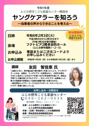 【お知らせ】ふじみ野市こども家庭センター講演会ヤングケアラーを知ろう~当事者の声から出来ることを考える~を開催します。