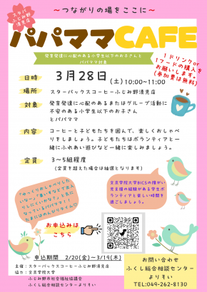 【参加者募集】スターバックス主催 パパママカフェ(発育発達に心配のある小学生以下のお子さんとパパ・ママ対象)を開催します!