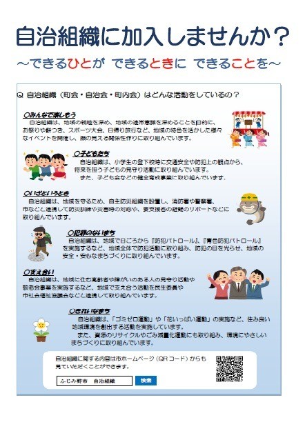 ふじみ野市内の58(令和7年4月1日現在)の町会・自治会・町内会では地域住民の交流やよりよい地域づくりのために様々な活動をしています。 是非、地域の町会・自治会・町内会に加入し、住みよい豊かな地域を築いていきましょう。