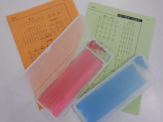 点字器と点字一覧表 (点字体験で使用)